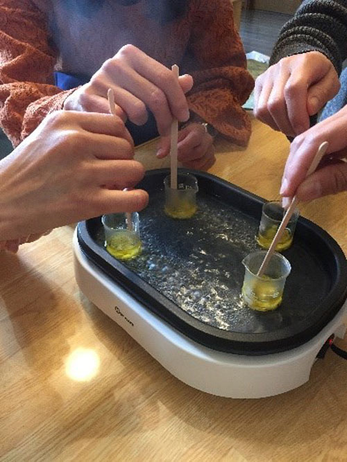 精油(エッセンシャルオイル)を用いたクラフト作りを行っています。 お好みの香りでリラックス、リフレッシュできます。 お作りいただいたアロマクラフトはお持ち帰りできます。